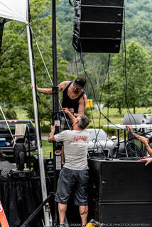Buckhill Skytop Music festival 2015. QSC line array, lights, and stage. |